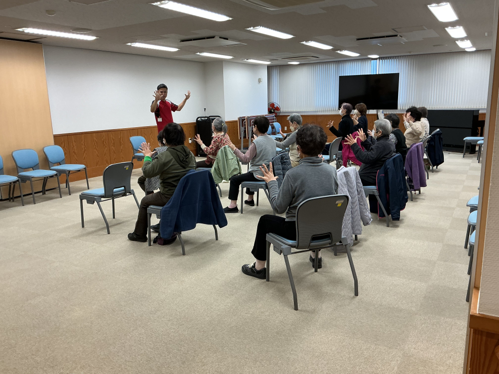 感染症が流行しやすい時期となり、運動することや栄養をとって免疫を高めましょうというお話がありました。クイズもあって興味深かったですね。もちろん体操も、手のこまやかな動きから、全身を使った脳トレまで色々と行ないました。
