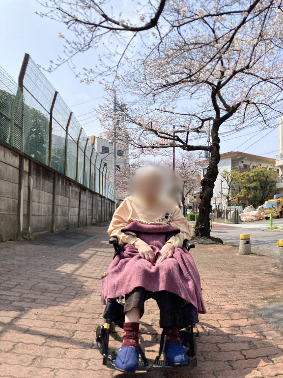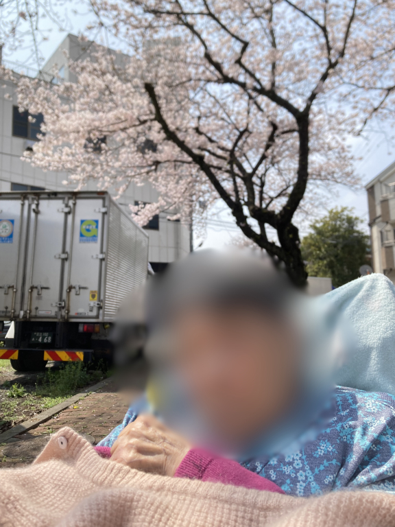 施設では、できるだけ多くのご利用者に桜を楽しんでいただきたいという思いから、短時間ではありますが、お花見の機会を設けました。