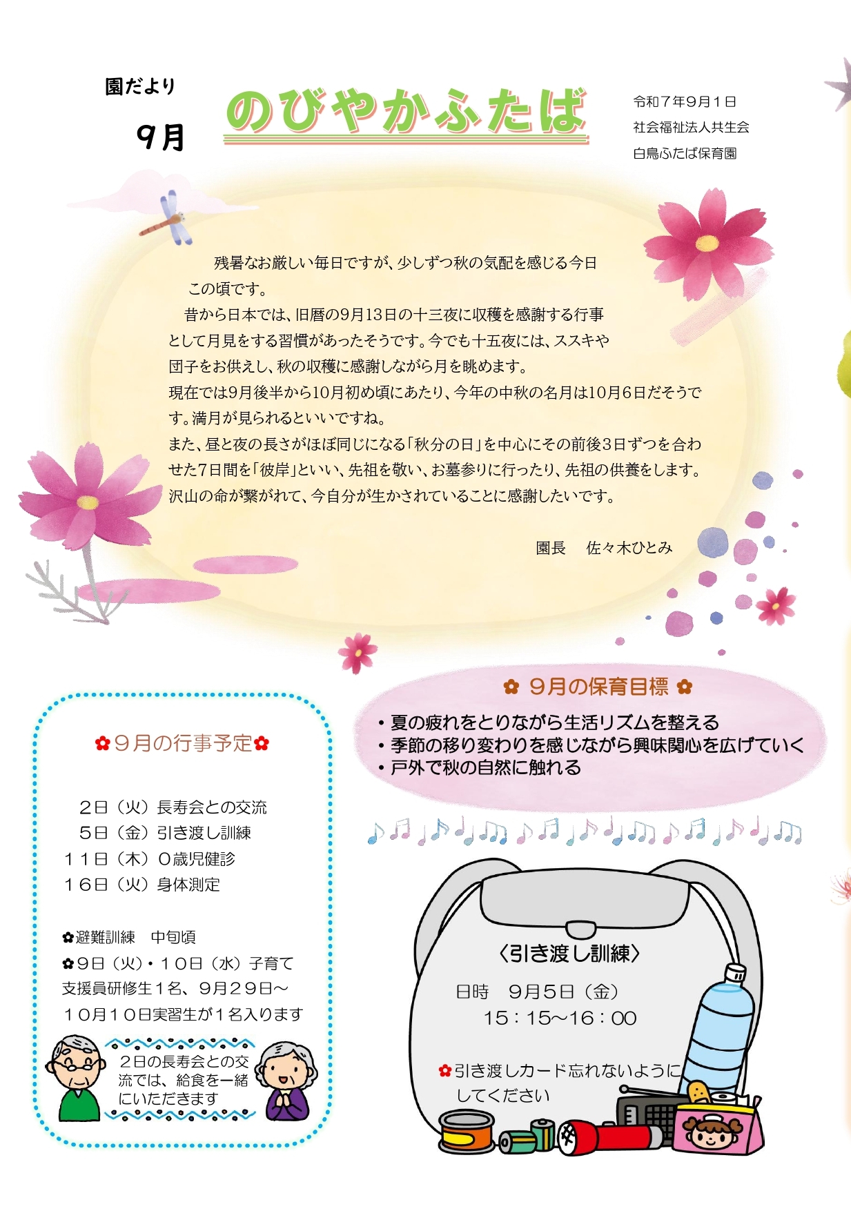 これまで前任者が構築してきたものを引き継ぎ、地域に根ざし、信頼される保育園を目指して、一生懸命取り組んでまいりますので、皆様のご支援、ご協力を宜しくお願い致します。