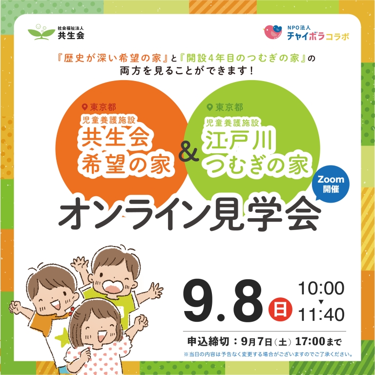 https://chabonavi.jp/event/3295※社会福祉法人共生会の児童養護施設「希望の家」と「江戸川つむぎの家」合同での開催となります。